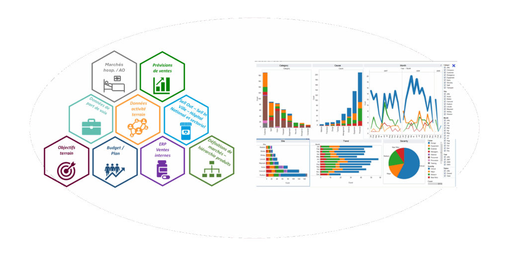 Croisement de données : Sell In / Sell out Officine, Hôpital, ventes internes, facturation, remises, appels d’offre, groupements, conditions commerciales et encodages. Données nationales ou sectorisées.